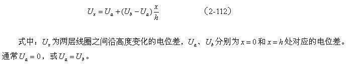 设圆柱形两层线圈之间的距离为d,高度为h,平均周长为g 。假定两层线圈之间沿高度的电位差为线性变化,即: