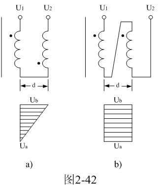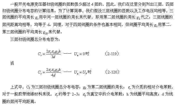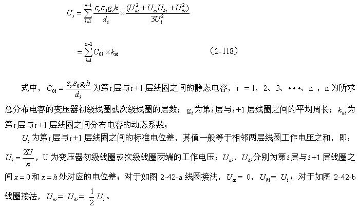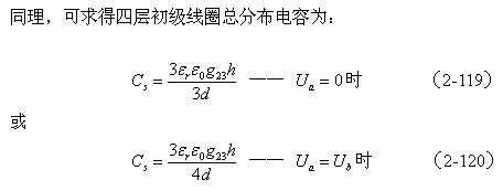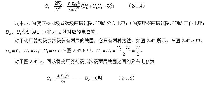 对于图2-42-b,可求得变压器初级或次级两层线圈之间的分布电容为: