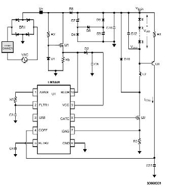 LM3445TRIAC调光LED驱动器,应用电压范围从80VAC到270VAC,导通角检测器/译码器可以实现宽全范围的(100:1)调光,内置3000Ω泄流电阻确保TRIAC信号译码无误,正在申请注册专利的调控架构可确保恒定的纹波电流以延长LED的工作寿命,可调节输出电流高至1A,可通过主/从操作方式控制多条灯串的亮度。