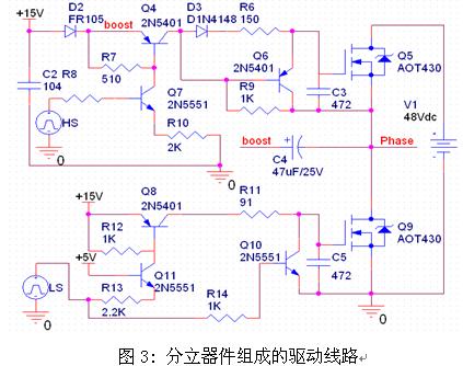 B.分立器件驱动电路用的器件较多,可靠性相对没有半桥芯片的驱动电路高。但前提条件是半桥驱动芯片的驱动电路要设计合理。