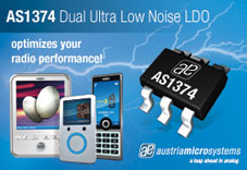 奥地利微电子的AS1374工作电压为2-5.5V,适合便携式电池供电应用。AS1374为匹配低成本、小容量陶瓷电容而优化和设计,每路输出为200mA负载电流时提供120mV的低电压降。AS1374可提供1.2V至3.6V的预编程输出电压(编程步长为50mV)。该器件采用先进的架构,以实现20μVRMS的超低输出电压噪声和优于85dB(在1kHz时)的电源抑制比。2个高电平有效使能引脚可以独立开启或关闭每路输出。