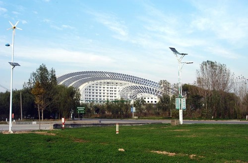 2009年12月24日,圣诞夜,全球最大太阳能办公大楼正式启用。这座名为“日月坛-微排大厦”的太阳能大楼,总建筑面积达到7.5万平方米,集展示、科研、办公、会议、培训、宾馆等功能于一身,采用全球首创太阳能热水供应、采暖、制冷、光伏发电等与建筑结合技术,是目前世界上最大的集太阳能光热、光伏、建筑节能于一体的高层公共建筑。