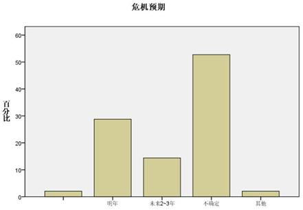 (三)?;て谌匀徊蝗范?br /> 尽管从产能受影响程度及其出口恢复情况来看,金融危机的影响已慢慢消退,但调查结果却显示,高达52.7%的企业领导者对危机预期非常不确定,预计明年会变好的企业占28.8%,预期未来2-3年者占14.4%。大忠电子市场部经理陈国平表示说:“就金融危机而言,一般的中小企业,包括决策者和管理者,他们并没有一个预期的分析,更多的时候只能凭着一种感觉来判断。要有一个准确的判断的话,它一定要有一个大量的数据分析。”