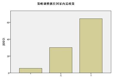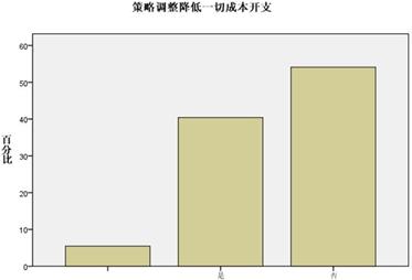 调查显示,在危机影响中,企业做出了降低一切成本开支,重新调整供应商、加大市场开发力度,调整客户群,抓住国家内需政策等一系列战略性政策调整,其中,企业本身的调整降低一切成本开支和加大市场开发力度成为最重要部分,分别占40.4%和54.8,正所谓内因决定外因,从主要矛盾出发。而在外因当中,在重新挑选供应商、调整客户群和抓住国家内需政策上,企业的选择比例分别是15.1%,36.3和30.1%。(如下列组图所示)