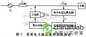 图中Vs表示交流电源,负载为非线性的谐波源,它产生谐波并消耗无功功率。有源电力滤波器系统由两大部分组成,即指令电流运算电路和补偿电流发生电路。其中,指令电流运算电路(即谐波和无功电流检测电路)的主要功能是从补偿对象的电流中提取所需的谐波和无功等电流分量。补偿电流发生电路由电流跟踪控制电路、驱动电路和主电路三部分构成,它的作用是根据指令电流运算电路得出补偿电流的指令信号,构造实际的补偿电流。主电路目前均采用PWM变流器,在产生补偿电流时,主要作为逆变器工作。