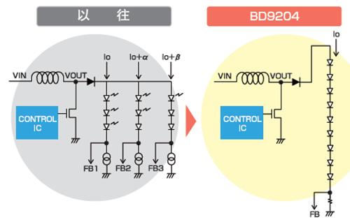 福田明进一步解释,亮度不均匀,特别是在低亮度时特别明显,即使在低亮度的时候(低PWM信号能率输入时)采用抑制列间LED电流匹配的独有技术,抑制较广调光范围内的亮度不均匀。此外,在PWM调光时,会产生EMI噪音而对其他功能造成影响,但Rohm公司的LCD背照光用LED驱动采用了将PWM调光时的升压DC/DC输出电压的波动控制在最小限度内的架构,导入了将辐射EMI噪音控制在最小限度内的功能,在极力减小组件开发者负担的同时,还减少了多余的对策零部件,是一款能够开发出为降低环境负荷做出巨大贡献的组件的LSI。