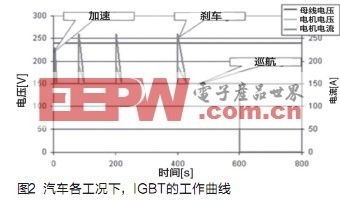 不同于工业应用中电机拖动,混合动力车辆驱动工况更复杂,例如对应城市工况,需要频繁切换于加速、减速、巡航各个状态,因此通过IGBT的电流、电压并非常量,而是随车辆工况反复循环波动,IGBT??樾枰诘缌?、电压循环冲击下可靠运行。