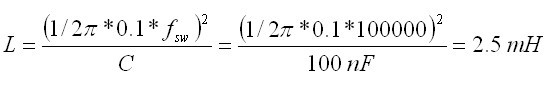 根据电磁干扰的属性及滤波器元件的复杂特性,电容C1和C2起始选择了100 nF电容。选择的差分电感L1用于提供L-C滤波器频率,约为开关频率的1/10。所使用的电感值是: