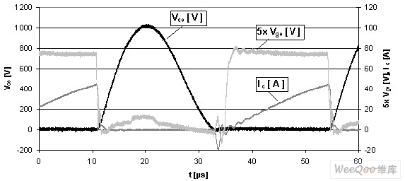 图11:1.8kW电磁炉应用(IHW20N120R2)的电压谐振电路波形