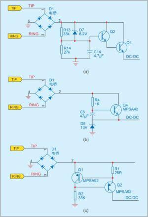 以前使用的普通电话机只需要很小功率就可满足正常通话的要求。它们利用交换机的馈电和简单的并联或串联线性稳压电路提供的几毫安电流,驱动通话电路工作,而不用过多关心效率与过流保护的问题。