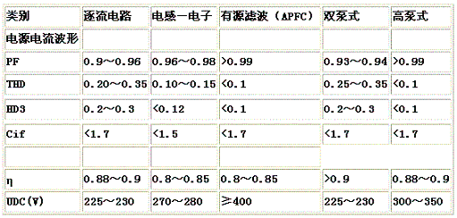 (1)美国VEPC提出的高频能量反馈的电荷泵电路,主要指标可达PF>0.995,THD<5%,Cf<1.6。