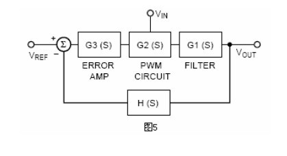 首先,输出电压被反馈网络降压,然后把这个反馈电压送入误差放大器,使之与基准电压相比较而产生一个误差电压信号。脉宽调制部分拾取这个误差电压并且把它与功率变压器的电流相比较并转化为合适的占空比去控制输出部分功率脉冲调制的数量。输出滤波器部分使来自于功率变压器的斩波电压或电流平滑,使反馈控制环完善。下面确定每一部分的增益和相位,并把他们联合起来形成系统的传输函数和系统的增益相位点。