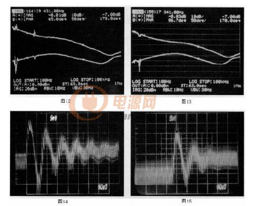 构造一个150W的电流模式正激转换器,经过修正的小信号环路特性显示出它在系统瞬态响应时所起的作用。图13(原文误为图12,译注)给出它的增益-相位图。与图11所展示的一样,获得了相同的博得图曲线。此增益相位图显示这个系统有86.7度的相位裕量。意味着稳定的系统有快速的瞬态响应。图15(原文误为图13,译注)给出系统的瞬态响应。为了展示相位裕量的作用,通过增加整个系统的增益和提高穿越频率,系统的相位裕量会减少。穿越频率提高时系统的相位裕量在减少。图12(原文误为图14,译注)给出更高的穿越频率和更少的相位裕量(65度)时的系统博得图。其瞬态响应见图14(原文误为图15,译注),注意更少的相位裕量导致更大的振荡和更长的调节时间。表1比较了这两个不同增益大小的系统之间线性和负载调节率的变化。正如前面所述,高的环路增益得到更紧密的线性和负载调节率?;褂Ω米⒁庑柙诟叩南辔辉A亢徒系偷幕仿吩鲆嬷淙〉闷胶狻?br />