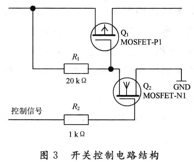 该电源系统各支路的开关控制主要由场效应管构成的开关电路来实现。实现该功能的电路结构如图3所示。