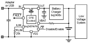 适配器热插入、适配器错误、瞬态或稳态过压等问题都可能导致输入过压。适配器热插入时,线缆电感与系统输入去耦电容器之间的共振会导致过压。对于独立充电器而言,输入过流可能不是什么问题,因为恒定电流模式会限制提供给输出或电池的电流量。不过,就输入到系统有直接电源路径的 bq24070 等电源路径管理电池充电器而言,在上拉电流过大时很难得到?;ぁW罱?,人们担心工作适配器在电流限制模式下可能出问题,希望可编程输入电流限制电路能够阻止适配器进入该模式。锂离子/锂聚合物电池组如果在高温下充电过度,可能会出现危险的燃烧现象。充电过度的一个重要标志就是电池单元电压升高。越来越多的制造商都在寻找可确保电池组安全性与合规性的安全措施。要提高电池安全性,可添加二级过压?;だ匆瞥淙氲缭础T诩觳獾绯毓故惫乇?CFE 功率 MOSFET 就可完成这一操作。