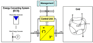 今天,DERs和RESs所使用的逆变器仍然主要采用了被动控制技术。这意味着对电网接入功率的控制与通过一次能源产生电能的能量转换系统密切相关。对电网侧来说,它们相当于负的负载。它们将从ECS处获得的全部功率注入电网。在这种方式下,电网侧的电网控制整合,甚至于主动参与控制和稳定电网状态变量都是不可能的。