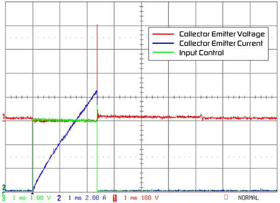 一旦IGBT限制了线圈充电电流,线圈的过流问题就得以解决。然而,此时IGBT本身还是处于能量耗散极高的状态,而且不可能长时间处于这种条件下而不损坏IGBT。在限流条件下,IGBT中的功率将攀升到60W到100W。当安装在点火线圈中时,IGBT对周围的热阻可高达60~70oC/W,因为线圈中缺乏良好的散热通道。因此,结温Tj=Ta+Pd×Rth(ja),在这种条件下,任何半导体器件的结温都会迅速超过可接受的结温限制。