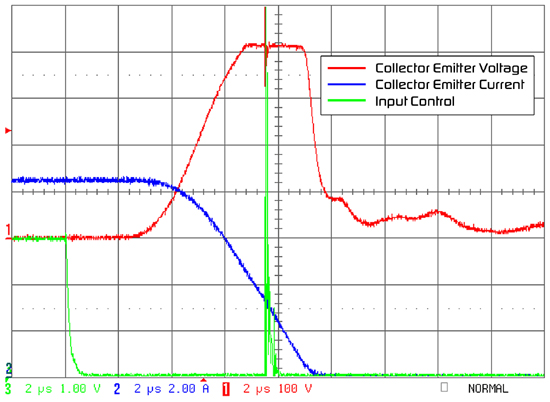 智能IGBT便能解决这个问题,即增加称为“软关断”的功能。软关断电路会在最大暂停时间达到设定值时生效。它控制IGBT,使其电流缓减,而不是立即中断。由于集电极电流始终采用缓减方式,线圈中产生的电压就能保持在低水平,从而防止在引擎管理系统设定的时刻外发生点火事件。