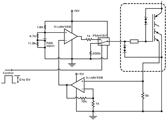 控制裸片和IGBT结合在多引脚的TO-220或TO-263封装中。IGBT焊接在封装件的管座(header)上,以最大限度降低IGBT与封装件间的电阻和热阻??刂坡闫镁档木埘Q前凡牧险程谕还茏?,使其与IGBT的高压集电极隔离。