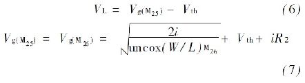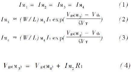 式中: K = (W/ L ) M4 / ( W/ L ) M3 ,通过式(5) 可以发现,偏置电流I M1 , I M2与输入电源无关。