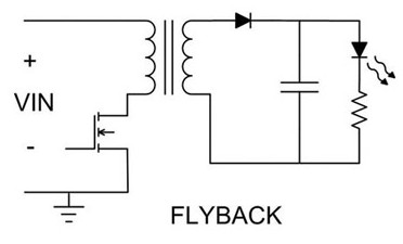 图1显示三个基本电源拓扑的例子,第一张图所显示的降压稳压器,可使用于输出电压永远小于输入电压的情形。图1中,降压稳压器改变金属氧化半导体场效晶体管(MOSFET)的导通时间,以控制进入LED的电流。可越过电阻测量电压以进行电流侦测;电阻与LED为串联状态。驱动MOSFET是本方法在设计上的重大挑战,如果从成本及效能的观点来看,建议使用须要浮接闸极驱动的N信道FET。N信道FET须要使用驱动变压器或是浮动驱动电路,两者都可维持电压高于输入电压。