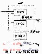 IDDQ测试是对功能测试的补充。通过测试静态电流IDDQ可检测出电路中的物理缺陷所引发的故障。IDDQ测试还可以检测出那些尚未引起逻辑错误,但在电路初期会转换成逻辑错误的缺陷。本文所设计的IDOQ电流测试电路对CMOS被测电路进行检测,通过观察测试电路输出的高低电平可知被测电路是否有物理缺陷。测试电路的核心是电流差分放大电路,其输出一个与被测电路IDDQ电流成正比的输出。测试电路串联在被测电路与地之间,以检测异常的IDDQ电流。