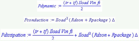 其中:tr和tf =上升和下降时间;Vin =输入电压;ILoad =负载电流;Fs =开关频率;RDS(ON) = MOSFET导通电阻;ΔPWM = 占空周期;Rpackage =封装阻抗;