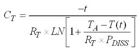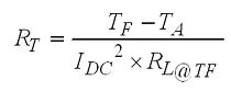 这里要注意的一件事情是电感器的功耗是其线圈电阻的函数,后者会随着温度发生变化。因此,需要考虑计算电感器在给定RT的TF。将RT的等式插入电感电阻与温度等式并求解TF可以得出: