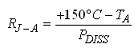 我们需要的是代表实际电路的准确RJ-A。测量RJ-A有多种方法,一种方法是使用热关机阈值,将其设置为+150℃。要用这种方法测量RJ-A,我们可以让LM3554在已知功耗(PDISS)下工作,然后慢慢提高环境温度直到器件关机为止。该器件具有一个内部标志,可以通过I2C兼容接口设置,在触及热关机阈值时会返回‘1’。使用这种方法获得的RJ-A将为: