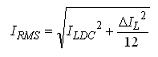 针对我们的情况,VOUT=VLED+300mV,且效率大约为90%。这可以算出PFET占空比(1-D)为83%,NFET占空比为17%。RMS电感电流等式为: