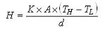 其中H是传热速率(单位为J/s),K为材料的导热系数,A为面积,(TH–TL)为温差,d为距离。当界面之间的接触面积增大、温差增大或界面之间的距离减少时,热量传导速度加快。可以将热传递模拟成一个电路,方法是将能源(热源或前面等式中的H)等同于电流源,高温器件与低温器件之间的温差等同于电压降,(K×A/d)部分作为导热系数,或将倒数(EQ2)等同于热阻(单位为℃/W)。通常热阻表示为符号θ或Rθ或只表示为RA-B,其中A和B是发生传热的两个器件。使用电路模拟重写热传递速率等式,得到以下结果: