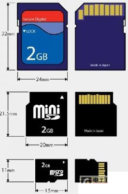 图2:SD卡、mini SD卡和 micro SD卡的外形大小。
