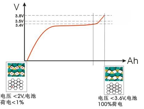 从上图的曲线不难看出,磷酸铁锂电池在快充满电时,锂离子几乎完全从正极脱嵌到负极,电池端电压会快速上升,出现充电曲线的上翘现象,这样会导致电池很容易达到过充电保护电压。因此磷酸铁锂电池组中某些电池充不满电的现象相对锰酸锂电池组而言会更为明显。