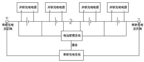 但是并联充电方法需要采用多个低电压、大电流的充电电源为每一只单体电池充电,存在充电电源成本高、可靠性低、充电效率低、连接线径粗等缺陷,因此目前没有大范围使用这种充电方法。