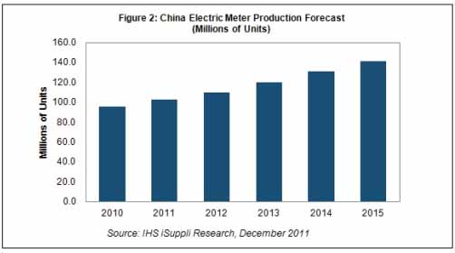 中国在智能电网上面的投资将刺激智能电表的发展,这种电表比较先进,可以向负责监控及收费的公用事业单位发送用电量数据。目前智能电表已经在中国生产的电表中占有大多数,占中国单相电表的86.3%,占多相电表的73.3%。