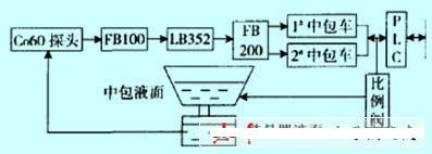 在液位控制仪中转换成标准信号后送到plc和上位机的过程中,考虑到意外情况下不能关闭中包塞棒,增加了一套信号传输通道fb200,一旦一路发生中断,可在不到3s的时间内投运另一路。plc和上位机在完成监控功能的同时输出信号到液压比例阀,在plc输出信号一定的前提下,重点研究了比例调节阀内放大旋钮的配合,掌握了放大和振幅之间的线性关系,可实现中包塞棒液压缸的振幅调节,进而实现结晶器液面的调节,达到液面检测和调节的闭环控制,最终实现整个l1级的闭环控制,如图2所示。