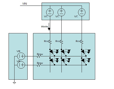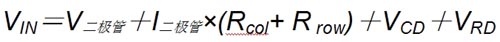 其中:V二极管是二极管的前向压降;I二极管是流经二极管的电流;Rcol是列连接的电阻;Rrow是行金属的电阻;VCD是列驱动器所需的开销;VRD是行驱动器所需的开销;在典型应用中,VIN大约为20V。