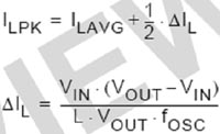 其中:ΔIL是电感电流的纹波峰峰值,单位是A;L是电感值,单位是H;FOSC是开关频率。