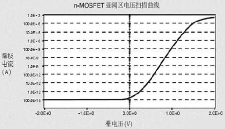 图3是一个增强型MOSFET的IDS对VGS曲线。该曲线是在4200- SCS型半导体特性测试系统上得到的。