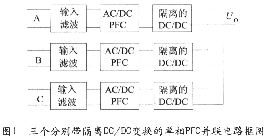 1)由三个分别带隔离DC/DC变换的单相PFC并联组成的方法