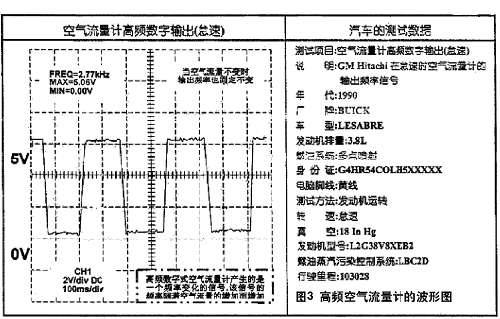 1. 模拟怠速时空气流量计的频率信号:幅值为5V,怠速时频率为2.77kHz。