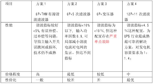 目前大型UPS输入谐波电流抑制共有4种方案: