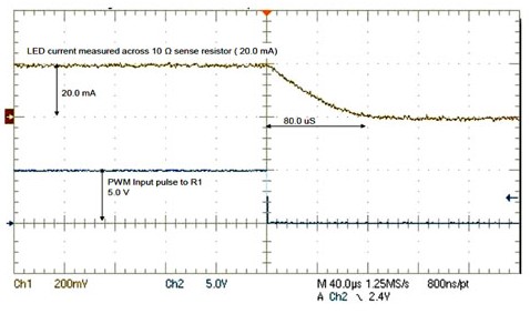 在LED导通期间,流经LED的电流保持恒定,使LED发射的光恒定,且无色度(色彩)变化。亮度与LED导通时间所占的百分比成正比。