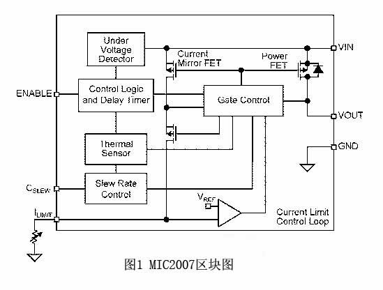 图1展示了MicrEL公司MIC2007型限流配电开关图例。