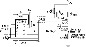 UC3842为电流型脉宽调制器,具有管脚数量少、外围电路简单、安装与调试简便、性能优良、价格低廉等特点,特别适合用于低成本的小功率反激电路。由于该应用电路已极为成熟,此处就不详加叙述。