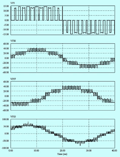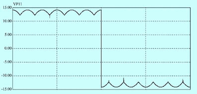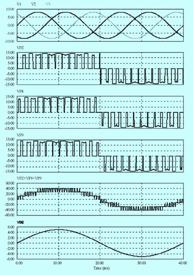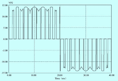 对虚拟整流波形进行斩波控制,便可以得到占空比可任意调节的PWM波形。如图7所示,是通过SPWM控制得到的输出波形图。可以看出它的包络就是虚拟整流得到的波形。