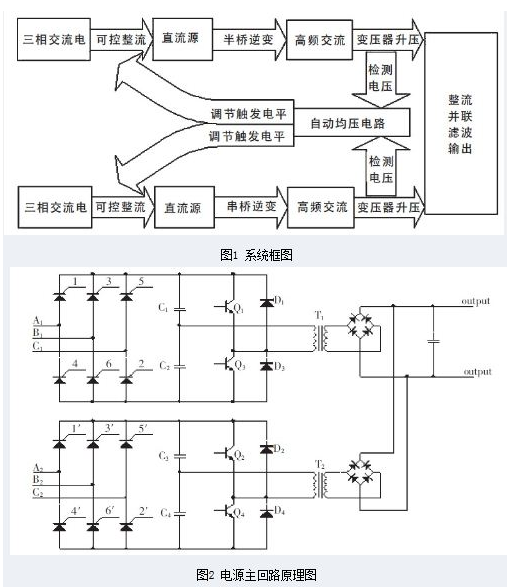 电源的系统框图及主回路原理图别如图1 和图2 所示。