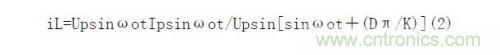 在功率放大的功率因数校正中基本上是采用升压式变换电路,而升压电感是串在输入回路中,电感电流等于输入电流,只要控制电感电流就可以达到控制输入电流。功率开关器件的切换速率ωS远大于工频ωo(ωS=Kωo,K 1);L值大得足以使电感中的电流连续,当功率器件开关切换脉冲占空比的变化遵循正弦规律时,即所谓正弦波脉宽调制(SPWM)时电感中流过的电流为: