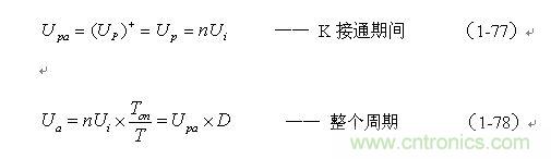 (1-76)式就是计算单激式变压器开关电源输出电压的表达式。式中,Upa和Upa-分别称为单激式变压器开关电源输出电压的正半波平均值和负半波平均值。