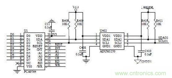 图2:PCA9564 及双向隔离电路